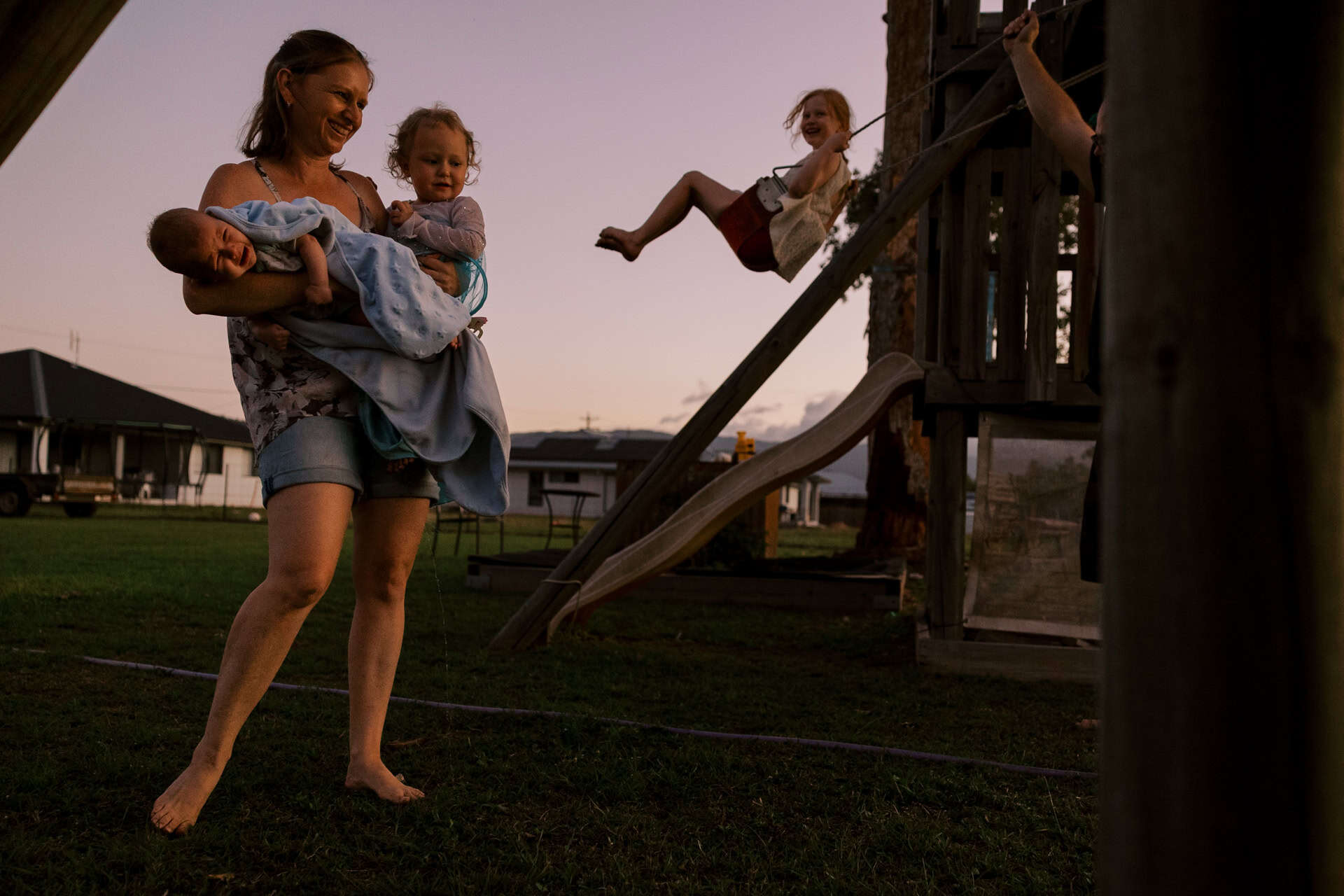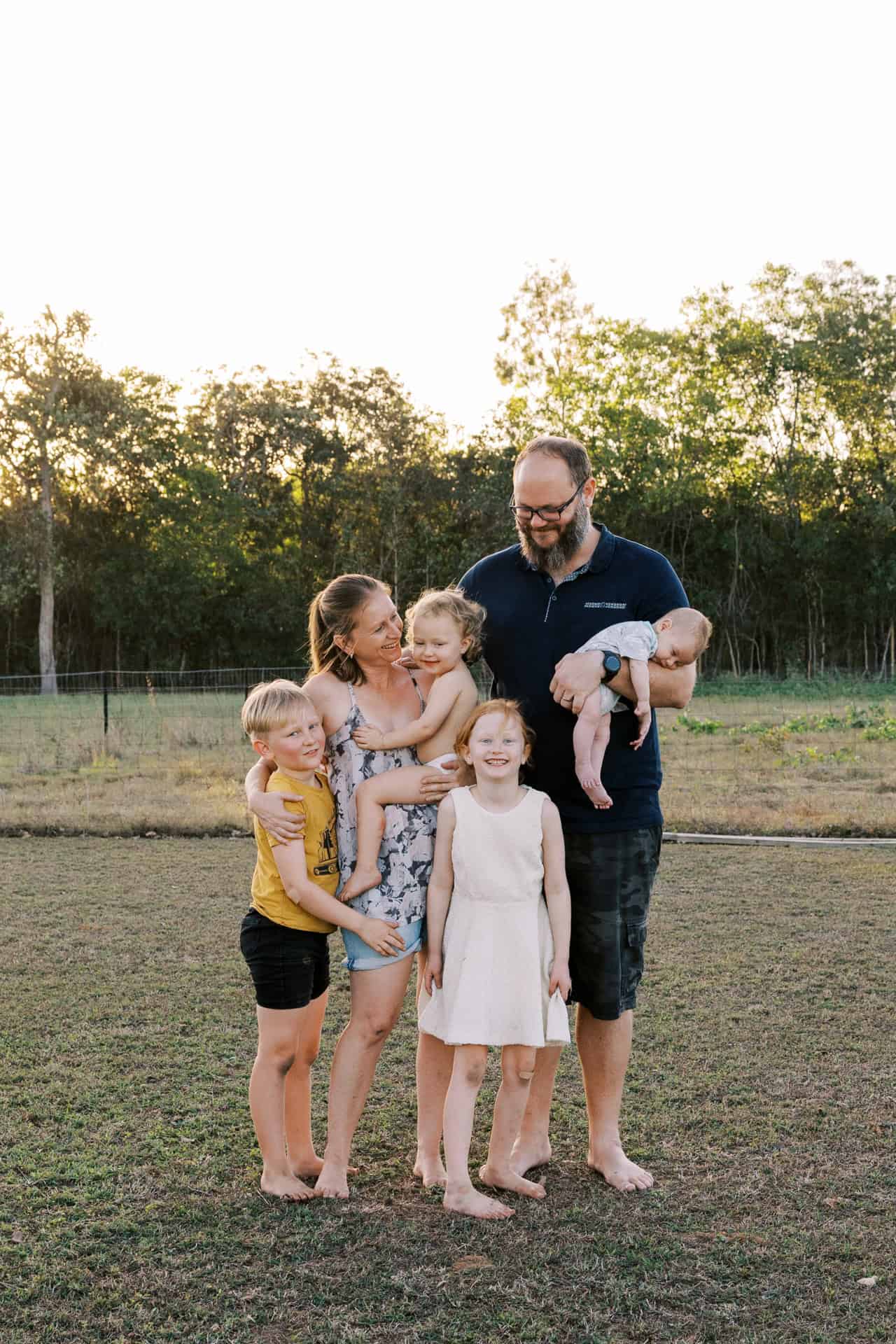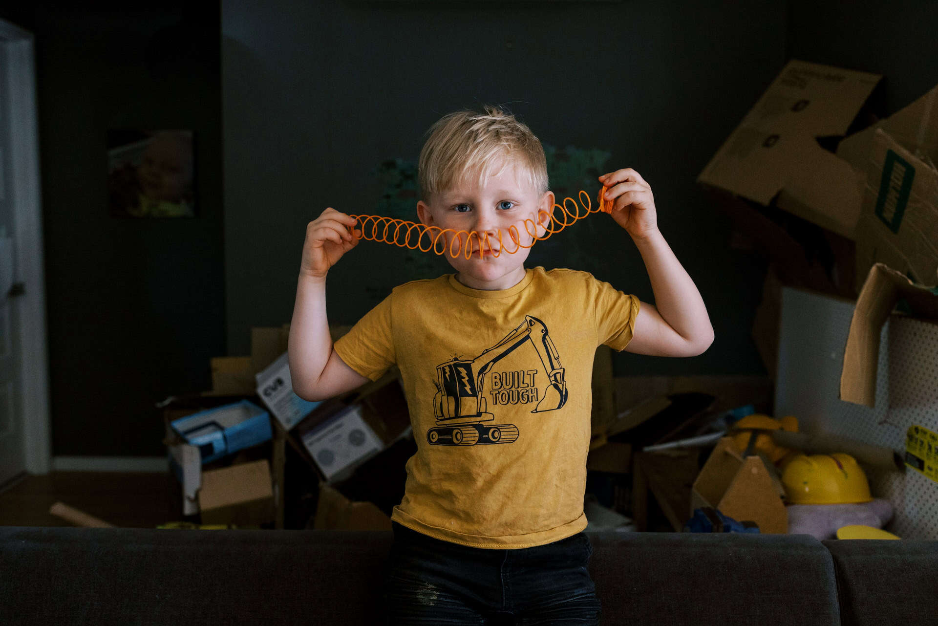 As soon as I arrived at their house to photograph their family of four (including their new baby), I could see that these parents totally delighted in their kids. The had made their home one they all loved to be in (and out in the yard too). From a rock wall being constructed in the entry to board games stack high on fridges. Behind the couch was a construction area…better than most preschools could provide! Their couches were not only for lying but also a valuable fort building resource. This family provided opportunity for unlimited play and adventure…everywhere. Their latest addition to the family fit in on one parents hips and in their arms. They all just “work” together.