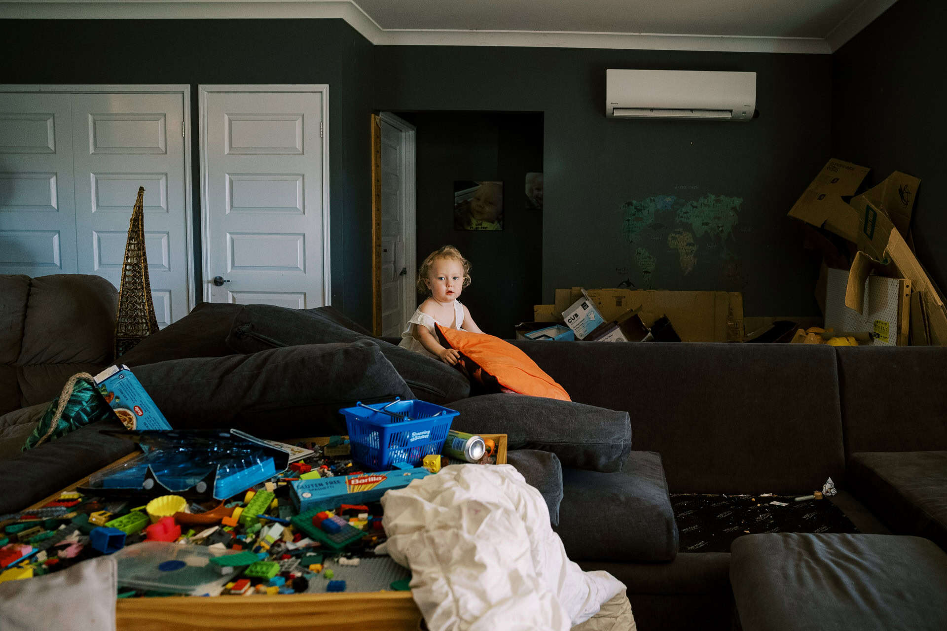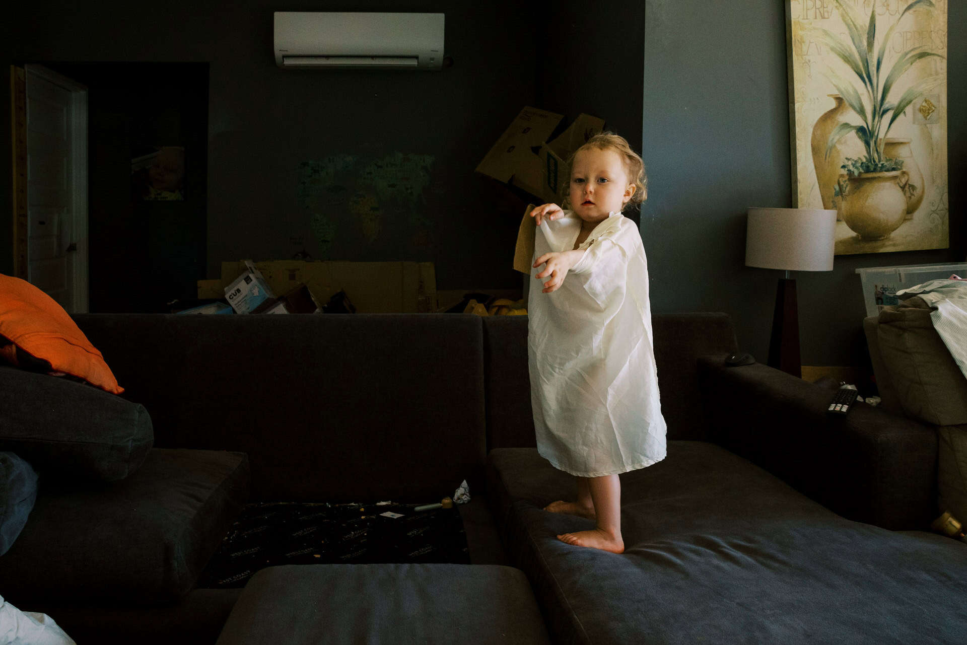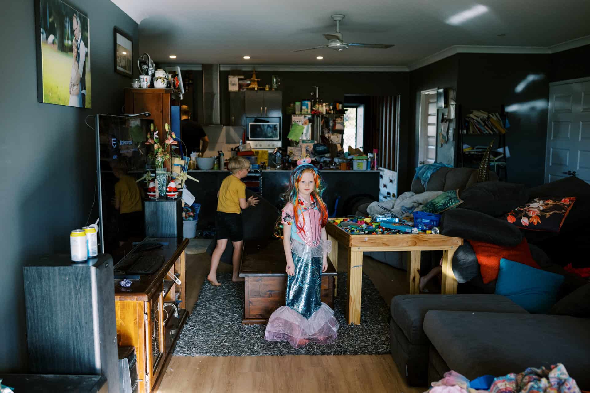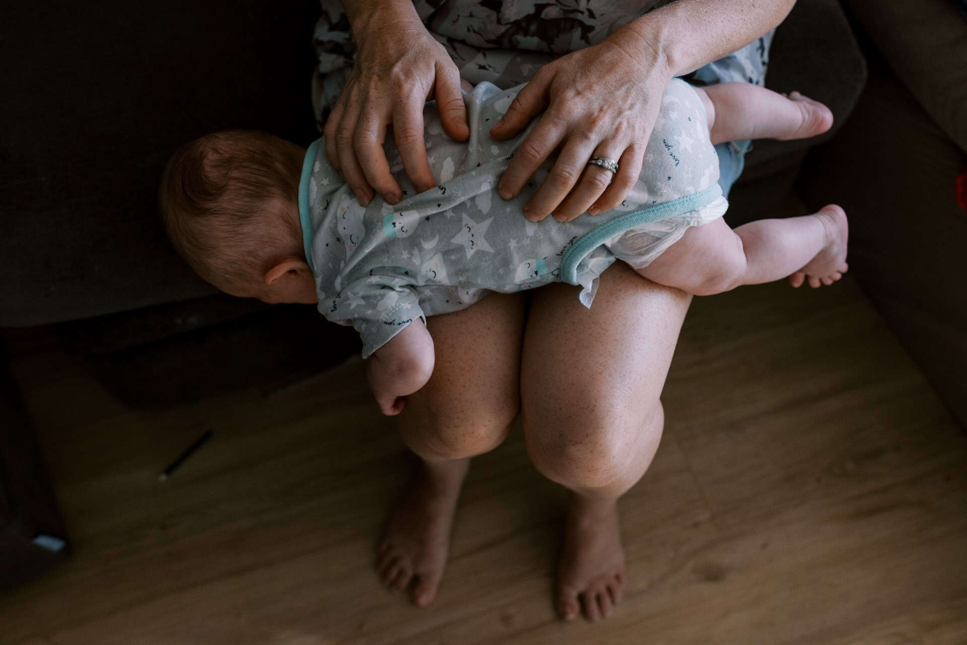 As soon as I arrived at their house to photograph their family of four (including their new baby), I could see that these parents totally delighted in their kids. The had made their home one they all loved to be in (and out in the yard too). From a rock wall being constructed in the entry to board games stack high on fridges. Behind the couch was a construction area…better than most preschools could provide! Their couches were not only for lying but also a valuable fort building resource. This family provided opportunity for unlimited play and adventure…everywhere. Their latest addition to the family fit in on one parents hips and in their arms. They all just “work” together.