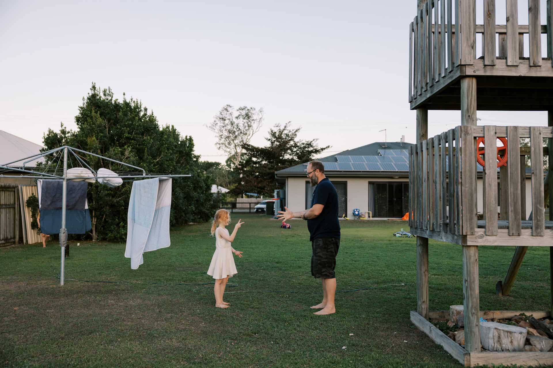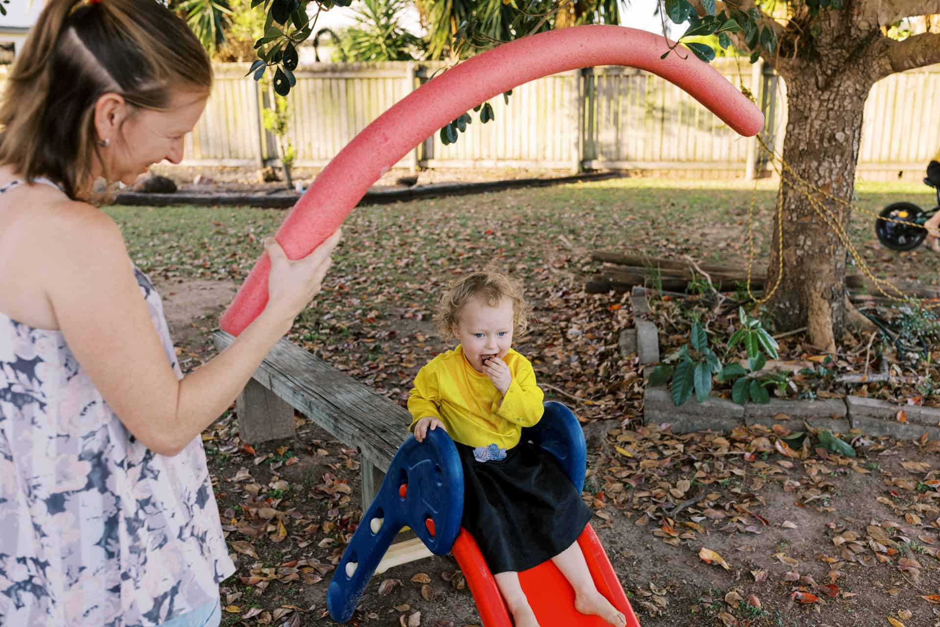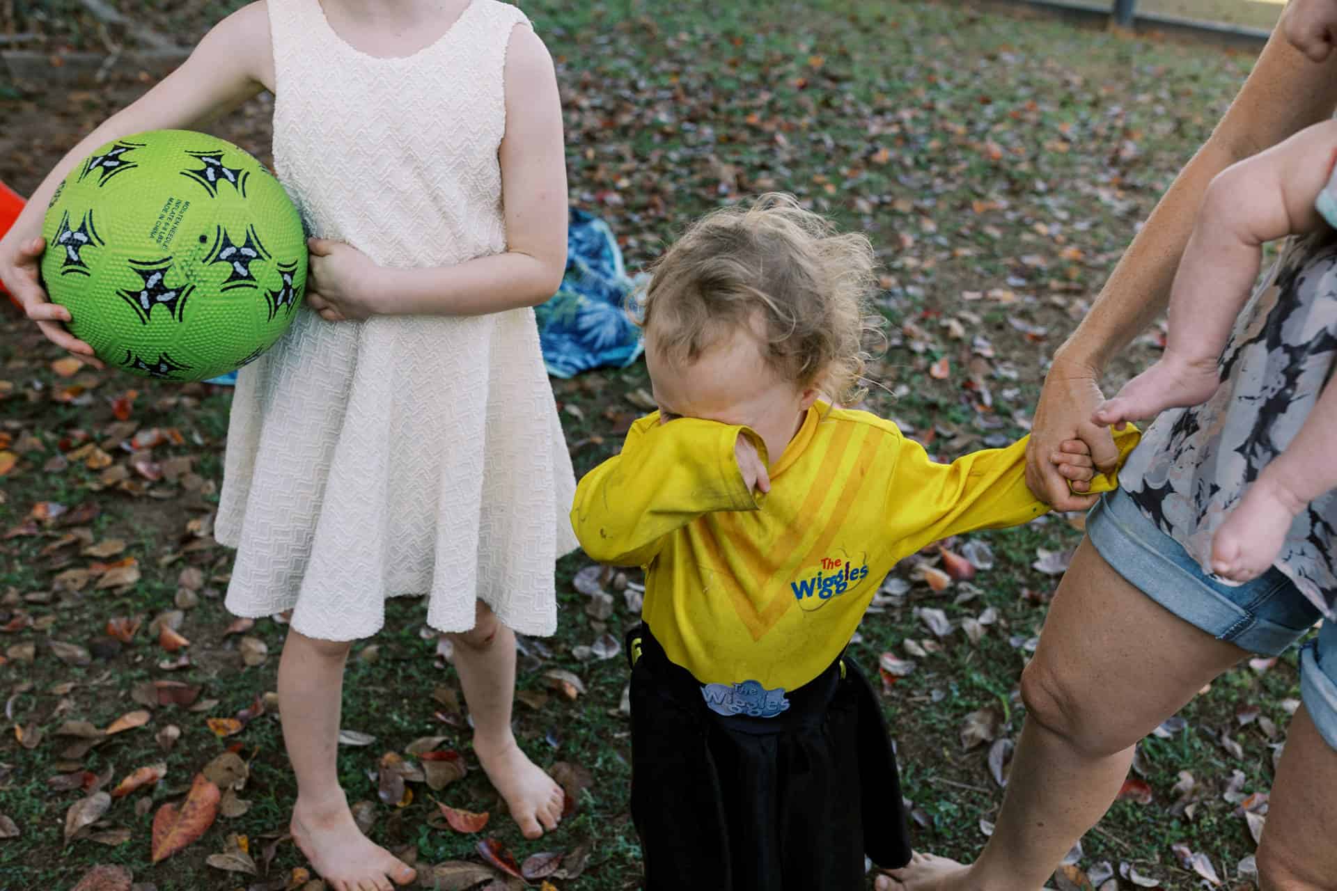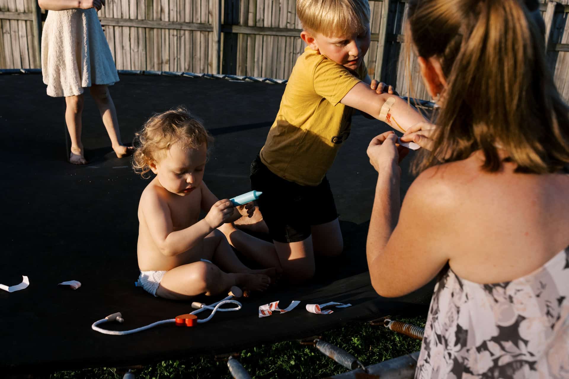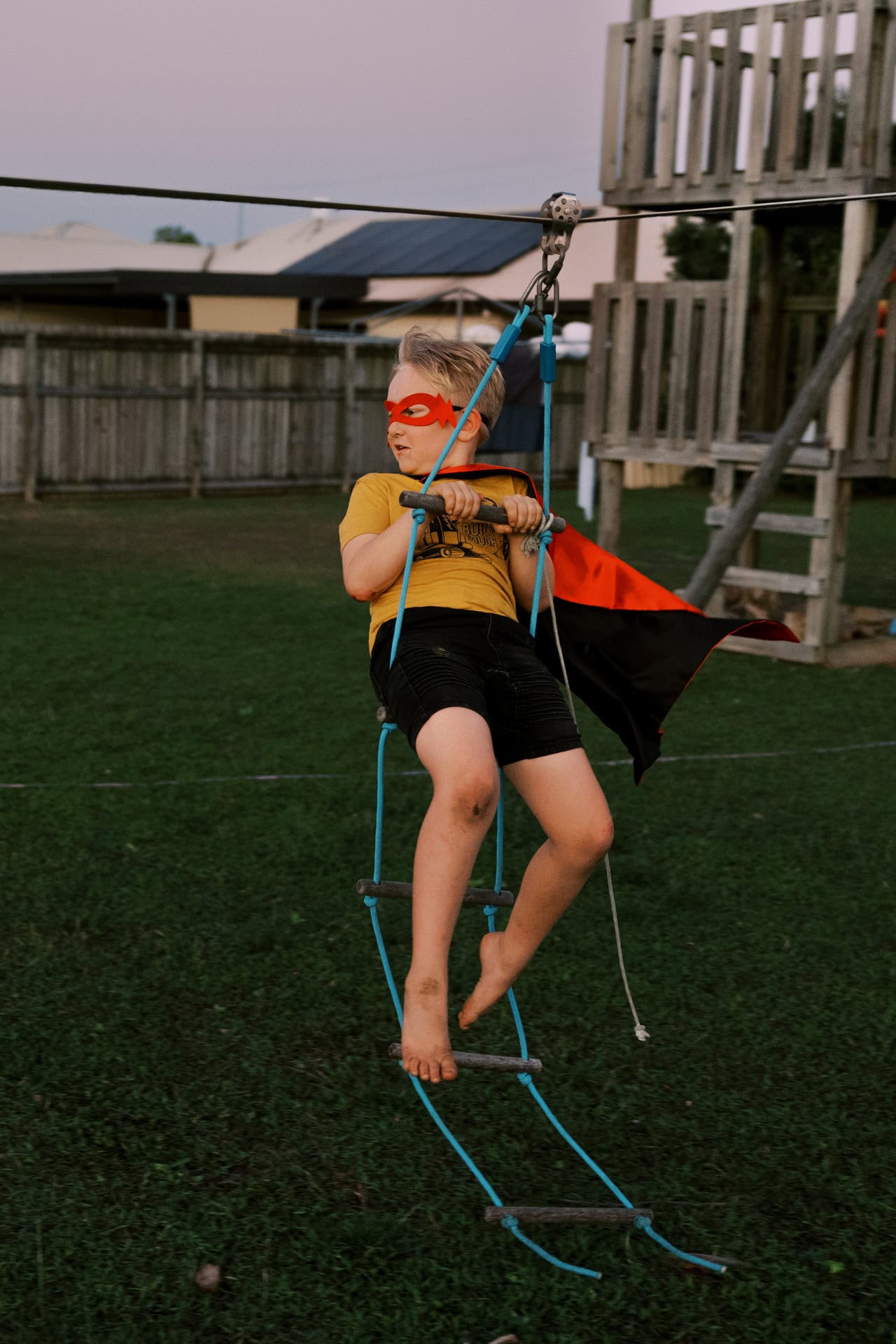 Outfits were changed during our time together. The selection of dress up clothes readily available…along with a pretend doctors kit for when a knee started to bleed. A cape to be worn with the opportunity of a flying fox in the back yard.